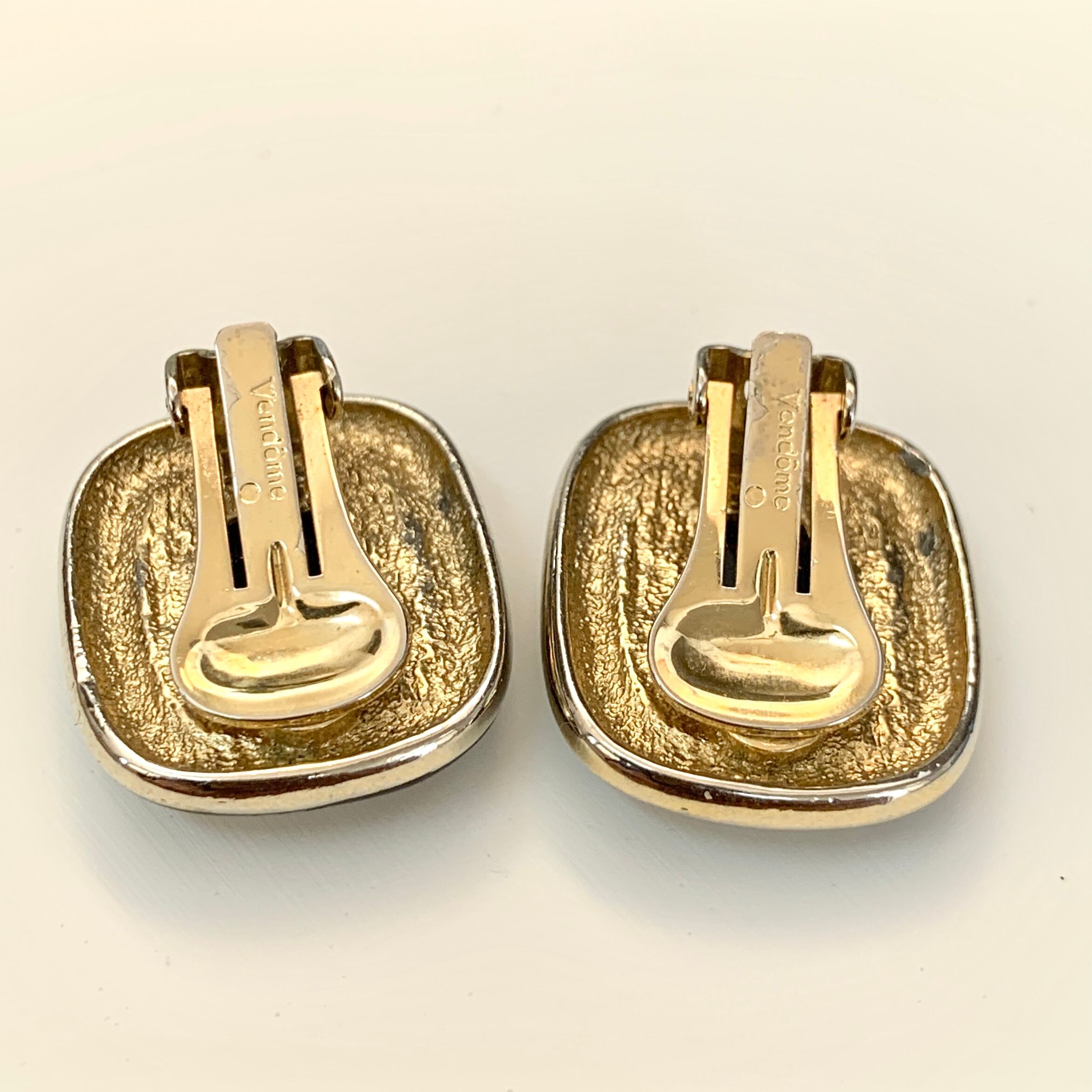 ヴァンドーム(Vendome)ブラックエナメルとラインストーンのイヤリング