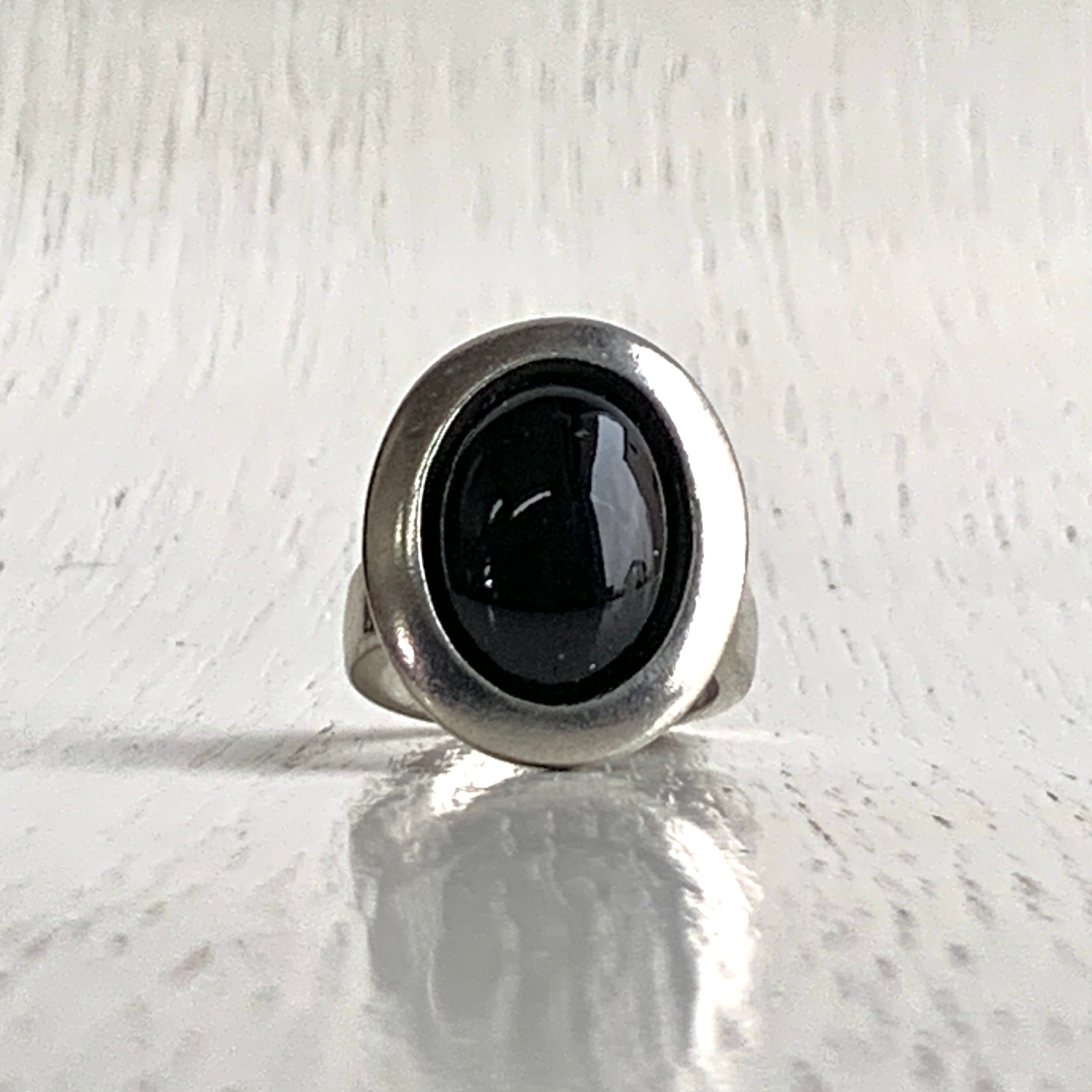 北欧ヴィンテージ オーバルカボション オニキスリング